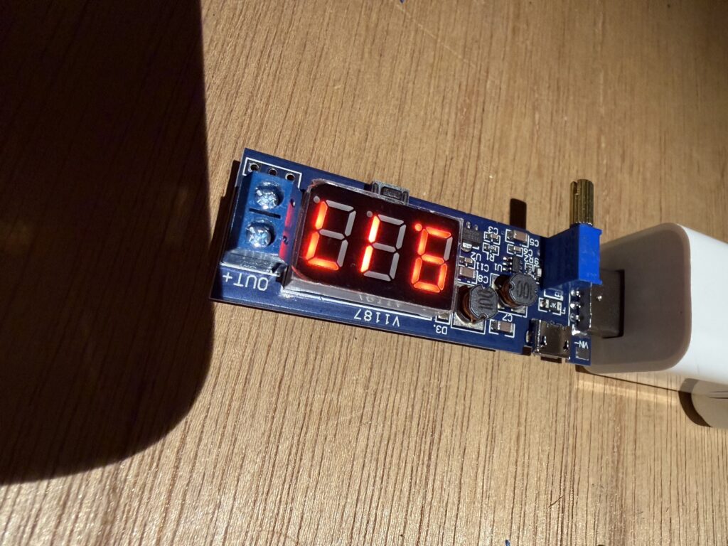 インバータの出力表示を見ると、7Vほどをうろうろしており、負荷に耐えきれていないことが分かった。